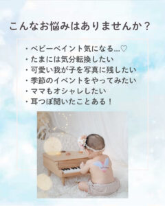 ベビーペイントで天使の羽根を描いた赤ちゃんと耳つぼジュエリーでママもオシャレを楽しみませんか💗